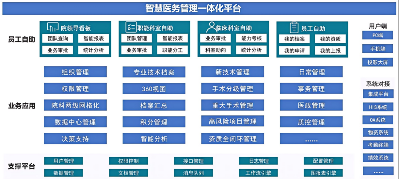针对医院目前医务管理存在的以上问题,利用信息化手段,基于医院智慧管理分级评估标准,建设一套数字化、信息化、智能化医务管理系统,全面提升医务管理工作的效率和质量,势在必行。